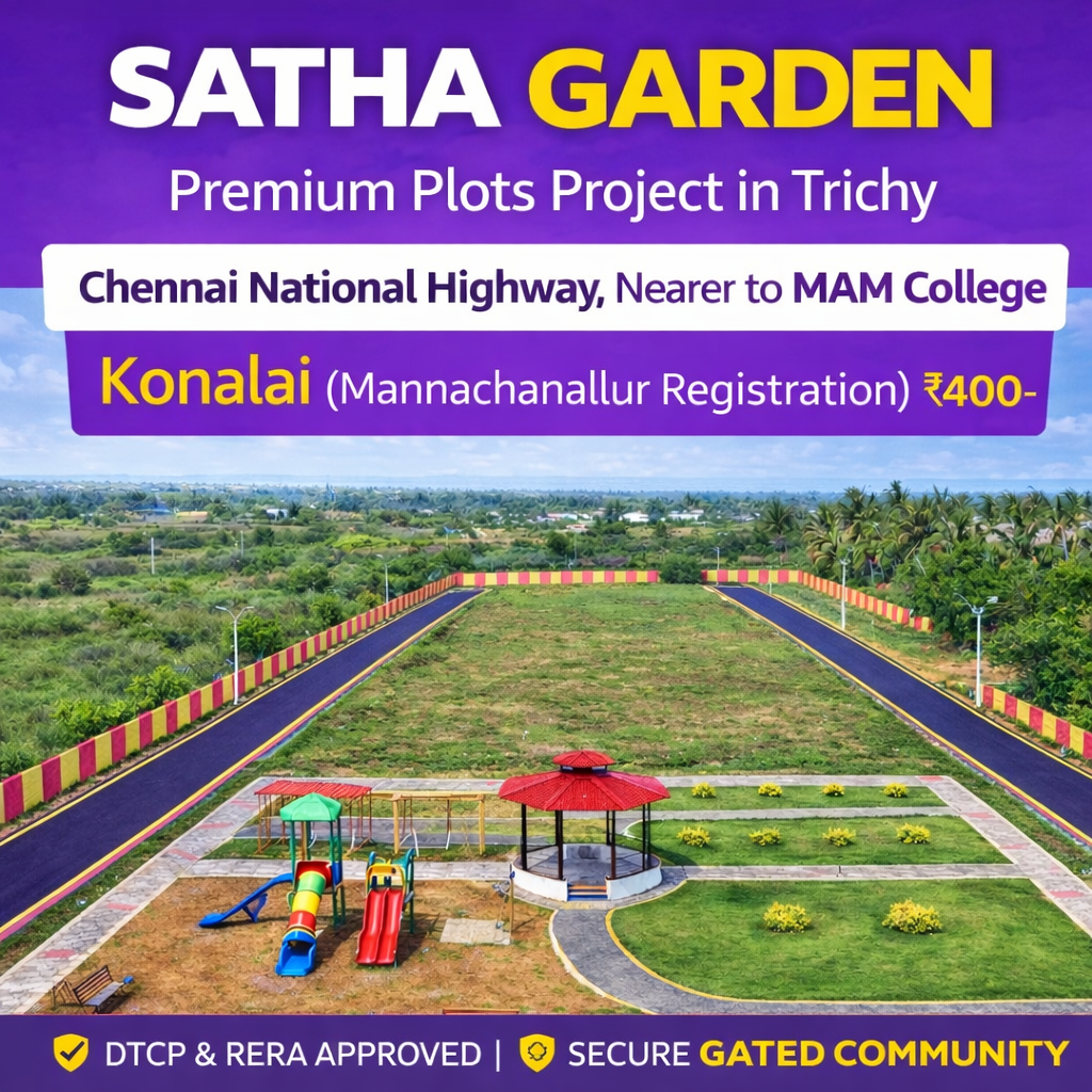 Sadha Garden is a premium DTCP and RERA approved residential plot project located in Konalai, Trichy, just behind MAM College and close to the Trichy–Chennai National Highway.